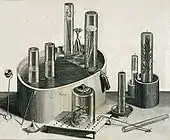A pneumatic trough is a piece of laboratory apparatus used for collecting gases, such as hydrogen, oxygen and nitrogen. It is mainly made of glass or various fibres and are of various sizes. It was invented by Stephen Hales.[1]