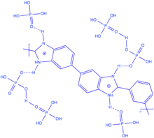 PBI are usually yellow to brown solid infusible up to 400 °C or higher.[7] The solubility of PBI is controversial, because while most of the linear PBI are partly or entirely dissolved in strong protonic acids (for instance, sulfuric acid or methanesulfonic acid), contradictory observations of solubilities have been recorded among weaker acids like formic acid, and in non-acidic media, such as the aprotic amide-type solvents and dimethyl sulfoxide. For example, one type of PBI prepared in phosphoric acid was found by Iwakura et al.[8] to be partially soluble in formic acid, but completely soluble in dimethyl sulfoxide and dimethylacetamide, whereas Varma and Veena[9] reported the same polymer type to dissolve completely in formic acid, yet only partially in dimethyl sulfoxide or dimethylacetamide.