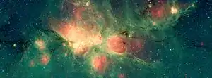 NASA's Spitzer Space Telescope and James Webb Space Telescope include instruments for obtaining both images and spectra of light emitted by PAHs associated with star formation. These images can trace the surface of star-forming clouds in our own galaxy or identify star forming galaxies in the distant universe.[39] In June 2013, PAHs were detected in the upper atmosphere of Titan, the largest moon of the planet Saturn.[40]