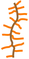 Polymer molecules within a brush are stretched away from the attachment surface as a result of the fact that they repel each other (steric repulsion or osmotic pressure). More precisely,[7] they are more elongated near the attachment point and unstretched at the free end, as depicted on the drawing.