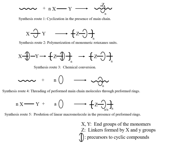 There are five major synthesis routes for main chain polyrotaxanes.[7][8][9]