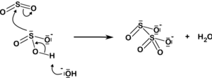 The disulfite ion also arises from the addition of sulfur dioxide to the sulfite ion: