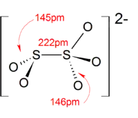 The anion consists of an SO2 group linked to an SO3 group, with the negative charge more localized on the SO3 end. The S–S bond length is 2.22 Å, and the "thionate" and "thionite" S–O distances are 1.46 and 1.50 Å respectively.[4]