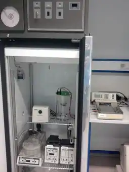 Although the pH value (10.00) of the electrophoresis buffer does not correspond to a physiological pH value within a cell or tissue type, the separated ring-shaped protein bands are eluted continuously into a physiological buffer solution (pH 8.00) and isolated in different fractions (cf. fig. Electropherogram).[6] Provided that irreversible denaturation cannot be demonstrated by an independent procedure, most protein molecules are stable in aqueous solution, at pH values from 3 to 10 if the temperature is below 50 °C.[15] As the Joule heat and temperature generated during electrophoresis may exceed 50 °C,[16] and thus have a negative impact on the stability and migration behavior of proteins in the gel, the separation system, consisting of the electrophoresis chamber, fraction collector and other devices, is cooled in a refrigerator at 4 °C, thus greatly reducing the risk of heat convection currents.[17] Overheating of the gel is impeded by internal cooling circuit of the gel column as an integrated part of the electrophoresis chamber and by generating a constant power by the power supply (cf. fig. Equipment).[18]
