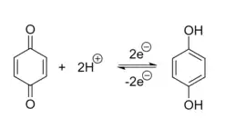 The oxidizing power of quinones is enhanced by the presence of acids.[7] In acidic conditions, quinone undergoes two-electron and two-proton reduction to hydroquinone.