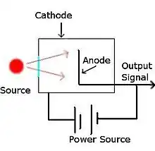 Scintillation detectors uses a photo luminescent source (such as ZnS) which interacts with radiation. When a radioactive particle decays and strikes the photo luminescent material a photon is released. This photon is multiplied in a photomultiplier tube which converts light into an electrical signal. This signal is then processed and converted into a channel. By comparing the number of counts to the energy level (typically in keV or MeV) the type of decay can be determined.