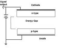 The operating principle of Semiconductor detectors is similar to gas ionization detectors: except that instead of ionization of gas atoms, free electrons and holes are produced which create a signal at the electrodes. The advantage of solid state detectors is the greater resolution of the resultant energy spectrum. Usually NaI(Tl) detectors are used; for more precise applications Ge(Li) and Si(Li) detectors have been developed. For extra sensitive measurements high-pure germanium detectors are used under a liquid nitrogen environment.[6]