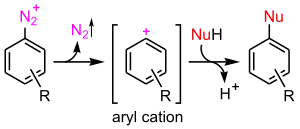 - aromatic SN1 mechanism encountered with diazonium salts
