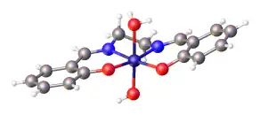 A metal salen complex is a coordination compound between a metal cation and a ligand derived from N,N′-bis(salicylidene)ethylenediamine, commonly called salen. The classical example is salcomine, the complex with divalent cobalt Co2+, usually denoted as Co(salen).[1] These complexes are widely investigated as catalysts and enzyme mimics.[2][3]