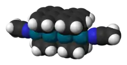 The term sandwich compound was introduced in organometallic nomenclature in 1956 in a report by J. D. Dunitz, L. E. Orgel and R. A. Rich, who confirmed the structure of ferrocene by X-ray crystallography.[1] The correct structure, in which the molecule features an iron atom sandwiched between two parallel cyclopentadienyl rings, had been proposed several years previously by Robert Burns Woodward and, separately, by Ernst Otto Fischer. The structure helped explain puzzles about ferrocene's conformers. This result further demonstrated the power of X-ray crystallography and accelerated the growth of organometallic chemistry.[2]