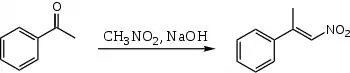 When nitromethane and acetophenone are combined using aqueous NaOH, only one product is formed: