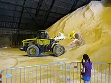 The finished product is stored in large concrete or steel silos. It is shipped in bulk, big bags or 25–50 kg (55–110 pounds) bags to industrial customers or packed in consumer-size packages to retailers.