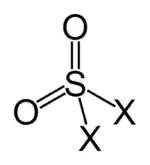 In organic chemistry, this group is found in sulfones (RSO2R′) and sulfonyl halides (RSO2X), where it is called the sulfonyl group.