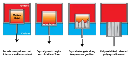 In the 60s and 70s, metallurgists changed focus from alloy chemistry to alloy processing. Directional solidification was developed to allow columnar or even single-crystal turbine blades. Oxide dispersion strengthening could obtain very fine grains and superplasticity.