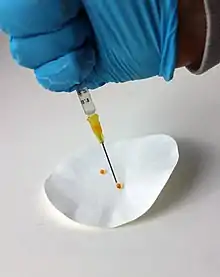 A superhydrophobic coating is a thin surface layer that repels water. It is made from superhydrophobic (ultrahydrophobicity) materials. Droplets hitting this kind of coating can fully rebound.[1][2] Generally speaking, superhydrophobic coatings are made from composite materials where one component provides the roughness and the other provides low surface energy.[3]