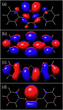 In 2017, Seferos et al. reported the oxidative ring opening of 2,5-diphenyltellurophene (PT) under aerobic conditions, and with meta-chloroperoxybenzoic acid (mCPBA).[21] Through DFT calculations, it was found that upon oxidation of PT, the resulting Te(IV) oxide PT-O had a lower HOMO level, with the LUMO being significantly stabilized. This led to a large decrease in the HOMO-LUMO energy gap, which predicted a red shift in the maxima of the absorption spectrum. Furthermore, it was found that the electron density of the LUMO included a Te-O σ* orbital. This orbital picture has been further reproduced using Avogadro and GAMESS, as shown on the orbital diagram below.[16][17]