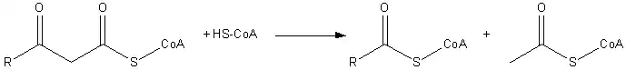 Thiolysis is a reaction with a thiol (R-SH) that cleaves one compound into two.[1] Thiolysis involves the addition of coenzyme A to one of the products. This reaction is similar to hydrolysis, which involves water instead of a thiol.[2] This reaction is seen in β-oxidation of fatty acids.[3] The depolymerisation of condensed tannins with the use of benzyl mercaptan as nucleophile is also called thiolysis.[4]