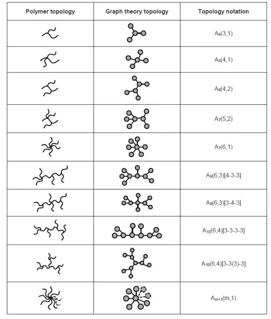 - Tezuka Y, Oike H (November 2001). "Topological polymer chemistry: systematic classification of nonlinear polymer topologies". Journal of the American Chemical Society. 123 (47): 11570–6. doi:10.1021/ja0114409. PMID 11716710.