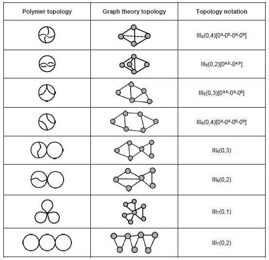 Bicyclic topology refers to a structure that two cycles connected internally or externally are present in a polymer chain. Selected bicyclic topologies are listed below:[9]