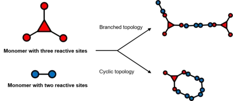 - The construction of a topological polymer network using monomer and crosslinker building blocks for a spatial uniqueness.[15]