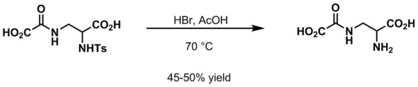 - Haskell, Betty E.; Bowlus, Stephen B. (1976-01-01). "New synthesis of L-2-amino-3-oxalylaminopropionic acid, the Lathyrus sativus neurotoxin". The Journal of Organic Chemistry. 41 (1): 159–160. doi:10.1021/jo00863a042. ISSN 0022-3263. PMID 1244456.