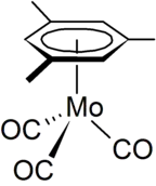 Cr(CO)6 reacts directly with benzene and other arenes to give the piano stool complexes Cr(C6R6)(CO)3.[4] The carbonyls of Mo and W behave comparably. The method works particularly well with electron-rich arenes (e.g., anisole, mesitylene). The reaction has been extended to the synthesis of [Mn(C6R6)(CO)3]+: