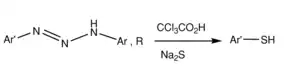 Triazenes decompose in the presence of protonating or alkylating agents into quaternary amines and diazonium salts; as such triazenes have been used as an in situ source of diazonium that reacted with sodium sulfide to give the corresponding thiophenols.[5] A strategy for the protection and deprotection of sensitive secondary amines is based on this principle.[9]