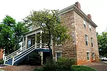 After the tenure of the next two presidents, John Brown (1811–1816) and Robert Finley (1817),[25] a timeframe that saw enrollment drop, presidents Moses Waddel (1819–1829) and Alonzo Church (1829–1859) worked to re-engage new students. By 1859, enrollment had risen to 100 students, and the university employed eight faculty members and opened a new law school.[26] During this timeframe, the university erected the New College building followed by the Chapel in 1832.[24] Church was the longest-serving president in UGA history.[27] In 1859, the state legislature abolished the Senatus Academicus, leaving the board of trustees as the only official governing body. When Church retired,[28] Andrew A. Lipscomb was appointed to the newly renamed position of chancellor in 1860.[26]