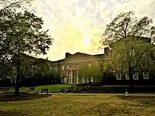 The turn of the century brought many changes in the administration and organization of the university including the naming of a new chancellor in 1899. Walter B. Hill became the first UGA alumnus to lead the university. A progressive leader, his six-year tenure, before his death from pneumonia, was marked with increased enrollment, expansion of the university's course offerings, and the addition of state funding through appropriation, for the first time bringing the university's annual income to over $100,000 in 1902. Hill and his successors David C. Barrow (1906–1925), Charles Snelling (1926–1932), and Steadman Sanford (1932–1935) would grow the school to take on the role of a true university.[31] Many of the university's schools and colleges were established during Barrow's tenure. The College of Education (1908), the Graduate School (1910), the School of Commerce (1912), the School of Journalism (1915), and the Division of Home Economics (1918) were all established during this period. In 1906, UGA also incorporated the College of Agriculture by bringing together A&M (agricultural and mechanical) courses. The college of science and engineering continued as formed in the previous century. Conner Hall became the first building built in South Campus and first of several buildings that housed the university's agriculture programs on what came to be known as "Ag Hill". In 1914, the first Phi Beta Kappa chapter in the state of Georgia was founded at UGA.[33] In 1923, another honor society, Phi Kappa Phi, established a chapter at the university.[34] In 1920, UGA's athletic program was among 14 of the 30 universities to leave the SIAA to form the Southern Conference.[35]
