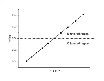 By measuring the equilibrium constant, Keq, at different temperatures, the Van 't Hoff plot can be used to assess a reaction when temperature changes.[7][8] Knowing the slope and intercept from the Van 't Hoff plot, the enthalpy and entropy of a reaction can be easily obtained using