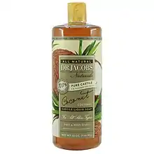 Vegan soaps (or vegetable soaps) are soaps made from fats or oils of vegetable origin rather than from saponified animal fats. The Vegan Society's definition of veganism encourages consumers to avoid all products containing ingredients derived from animals,[1] so vegan soaps might include aloe vera, castor oil, cornstarch, corn syrup, pectin, or essential oils, while excluding animal products such as lanolin, gelatin, lard, and tallow.[2] Examples of traditional vegan soaps include: Aleppo soap, Castile soap, Marseille soap, Nabulsi soap, and some glycerin soaps.