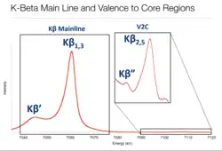 These two spin configurations determine the general shape of the and -mainlines as seen in figure one and two, while the structural configuration of electrons within the compound causes different intensities, broadening, tailing and piloting of the and -lines.[4] Although this is quite a lot of information, this data has to be combined with absorption measurements of the so-called "pre-edge" region. Those measurements are called XANES (X-ray absorption near edge structure).