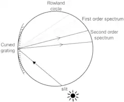 The spatially distributed signal is recorded with a position sensitive detector at the crystal's focusing axis providing the overall spectrum. Alternative wavelength dispersive concepts have been proposed and implemented based on Johansson geometry having the source positioned inside the Rowland circle, whereas an instrument based on Johann geometry has its source placed on the Rowland circle.[8][9]