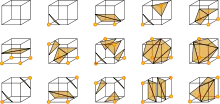 Reconstruction of the surface is performed using a distance function which assigns to each point in the space a signed distance to the surface S. A contour algorithm is used to extracting a zero-set which is used to obtain polygonal representation of the object. Thus, the problem of reconstructing a surface from a disorganized point cloud is reduced to the definition of the appropriate function f with a zero value for the sampled points and different to zero value for the rest. An algorithm called marching cubes established the use of such methods.[35] There are different variants for given algorithm, some use a discrete function f, while other use a polyharmonic radial basis function is used to adjust the initial point set.[36][37] Functions like Moving Least Squares, basic functions with local support,[38] based on the Poisson equation have also been used. Loss of the geometry precision in areas with extreme curvature, i.e., corners, edges is one of the main issues encountered. Furthermore, pretreatment of information, by applying some kind of filtering technique, also affects the definition of the corners by softening them. There are several studies related to post-processing techniques used in the reconstruction for the detection and refinement of corners but these methods increase the complexity of the solution.[39]