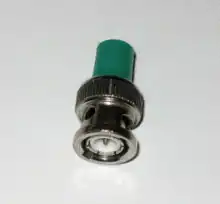 As is the case with most other high-speed buses, Ethernet segments have to be terminated with a resistor at each end. Each end of the cable has a 50 ohm (Ω) resistor attached. Typically this resistor is built into a male BNC and attached to the last device on the bus. This is most commonly connected directly to the T-connector on a workstation.[lower-alpha 2] If termination is missing, or if there is a break in the cable, the AC signal on the bus is reflected, rather than dissipated, when it reaches the end. This reflected signal is indistinguishable from a collision, so no communication can take place.