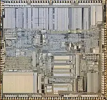 Dave Vannier, the chief architect designed this microprocessor. It took them two years to complete this design since it uses the existing 386 architecture to implement. That assist with advanced computer-aided design tools which includes a complete simulation of system board. This die contains the 386 CPU core, AT Bus Controller, Memory Controller, Internal Bus Controller, Cache Control Logic along with Cache Tag SRAM and Clock. This CPU contains 855,000 transistors using one-micron CHMOS IV technology. It was available for USD $176 in 1,000 unit in quantities.[3] The 25-MHz version was available in samples for USD $189 in 1,000-piece quantities, but that version will be available in production by end of 1991.[35]