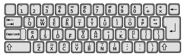 Due to the unusual character set, many programmers use special keyboards with APL keytops to write APL code.[60] Although there are various ways to write APL code using only ASCII characters,[61] in practice it is almost never done. (This may be thought to support Iverson's thesis about notation as a tool of thought.[62]) Most if not all modern implementations use standard keyboard layouts, with special mappings or input method editors to access non-ASCII characters. Historically, the APL font has been distinctive, with uppercase italic alphabetic characters and upright numerals and symbols. Most vendors continue to display the APL character set in a custom font.