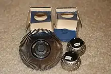 A key development in the ability to use APL effectively, before the wide use of cathode ray tube (CRT) terminals, was the development of a special IBM Selectric typewriter interchangeable typing element with all the special APL characters on it. This was used on paper printing terminal workstations using the Selectric typewriter and typing element mechanism, such as the IBM 1050 and IBM 2741 terminal. Keycaps could be placed over the normal keys to show which APL characters would be entered and typed when that key was struck. For the first time, a programmer could type in and see proper APL characters as used in Iverson's notation and not be forced to use awkward English keyword representations of them. Falkoff and Iverson had the special APL Selectric typing elements, 987 and 988, designed in late 1964, although no APL computer system was available to use them.[16] Iverson cited Falkoff as the inspiration for the idea of using an IBM Selectric typing element for the APL character set.[17]