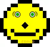 The smiley face of the first version of Acid2. Due to problems in this version of the test, the nose is too close to the mouth and the text "ERROR" appears even in a standards-compliant browser.