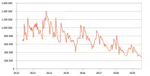 Difficulties maintaining a sufficient number of contributors to keep the project viable have persisted for several years. In January 2015, the project reported a lack of active developers and code contributions.[10] There have been continual problems providing timely fixes to security vulnerabilities since 2015.[11][12][13][14] Downloads of the software peaked in 2013 with an average of just under 148,000 per day, compared to about 50,000 in 2019 and 2020.[15]