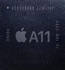 The Apple A11 Bionic is a 64-bit ARM-based SoC[85] that first appeared in the iPhone 8, iPhone 8 Plus, and iPhone X, which were introduced on September 12, 2017.[85] It has two high-performance cores, which are 25% faster than the A10 Fusion, four high-efficiency cores, which are 70% faster than the energy-efficient cores in the A10, and for the first time an Apple-designed three-core GPU with 30% faster graphics performance than the A10.[85][86] It is also the first A-series chip to feature Apple's "Neural Engine," which enhances artificial intelligence and machine learning processes.[87]