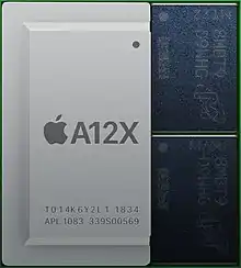 The Apple A12X Bionic is a 64-bit ARM-based SoC that first appeared in the 11.0" iPad Pro and the third generation of the 12.9" iPad Pro, which were both announced on October 30, 2018.[92] It offers 35% faster single-core and 90% faster multi-core CPU performance than its predecessor, the A10X. It has four high-performance cores and four high-efficiency cores. The A12X is manufactured by TSMC using a 7 nm FinFET process.
