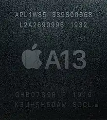 The "A" series is a family of SoCs used in the iPhone, certain iPad models, and the Apple TV. "A" series chips were also used in the discontinued iPod Touch line and the original HomePod. They integrate one or more ARM-based processing cores (CPU), a graphics processing unit (GPU), cache memory and other electronics necessary to provide mobile computing functions within a single physical package.[4]