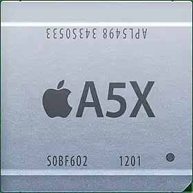 The Apple A5X is an SoC announced on March 7, 2012, at the launch of the third-generation iPad. It is a high-performance variant of the Apple A5; Apple claims it has twice the graphics performance of the A5.[41] It was superseded in the fourth-generation iPad by the Apple A6X processor.
