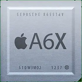 Apple A6X is an SoC introduced at the launch of the fourth-generation iPad on October 23, 2012. It is a high-performance variant of the Apple A6. Apple claims the A6X has twice the CPU performance and up to twice the graphics performance of its predecessor, the Apple A5X.[53]
