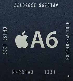 The Apple A6 is a PoP SoC introduced on September 12, 2012, at the launch of the iPhone 5, then a year later was inherited by its minor successor the iPhone 5C. Apple states that it is up to twice as fast and has up to twice the graphics power compared to its predecessor the Apple A5.[46] It is 22% smaller and draws less power than the 45 nm A5.[47]