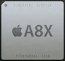 The Apple A8X is a 64-bit SoC introduced at the launch of the iPad Air 2 on October 16, 2014.[75] It is a high performance variant of the Apple A8. Apple states that it has 40% more CPU performance and 2.5 times the graphics performance of its predecessor, the Apple A7.[75][76]