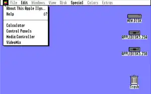 In addition to continued enhancements to the IIGS Finder and loadable fonts, GS/OS offered plug-in device drivers (modem, printer, etc.), a thermometer progress display, AppleShare support, File System Translators for accessing foreign file formats, disk caching and support for storage devices up to 4 Gigabytes.[1] It also extends the ProDOS file system to provide for resource forks on files similar to those used on the Apple Macintosh, which allows for programs to be written in a more flexible way. The newly included Apple Advanced Disk Utilities and Apple IIGS Installer helped facilitate partitioning, formatting and installing software and drivers with visual ease. A command-line development environment called APW (Apple Programmer's Workshop) is available; much like the Macintosh Programmer's Workshop.[2][3][4]