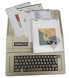 The Apple IIe (styled as Apple //e) is the third model in the Apple II series of personal computers produced by Apple Computer. It was released in January 1983 as the successor to the Apple II Plus. The e in the name stands for enhanced. It is the first Apple II with built-in lowercase and 80-column text support, as well as 64K RAM, while reducing the total chip count from previous models by approximately 75%.