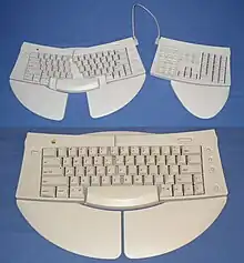 The Apple Adjustable Keyboard, which was sold as an optional upgrade, was Apple's 1993 entry into the ergonomically adjustable keyboard market. It was often criticized for its flimsy construction. It came with a separate keypad (not sold separately), the first to do so since the original Macintosh keyboard.